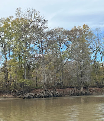 We cruised 41 miles in six hours and are anchored in the Tensaw River, a tributary of the Mobile River that is wide, wild and very beautiful. One other Looper boat arrived after us, but is not one of our buddy boats from Demopolis. We are within 50 miles of Mobile Bay, our portal to the Gulf of Mexico and the scenery is changing. We’re seeing more Spanish moss on the trees and grass and leaves that are still green—good omens that we will eventually get to the warm weather that we’ve traveled 2,000 miles and 100 days for.