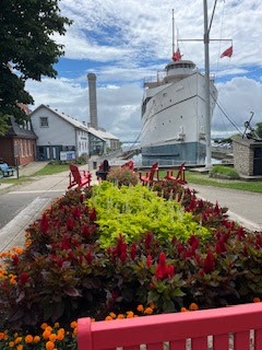 We spent yesterday in Kingston, doing some exploring, provisioning, connecting with family and waiting out a little rain. Our only sightseeing stop of the day was the Great Lakes Museum, located at the site of an old dry-dock and featuring the SS Keewatin and the intact pump room machinery for draining the dry-dock. Today’s Bonus Question is a word search from the museum (no answer below—you figure it out). We had lunch and a spirited game of Snakes & Ladders at a nearby cafe and happened upon Grecos, an amazing Greek restaurant for dinner, where we had one of our best meals on the Loop.